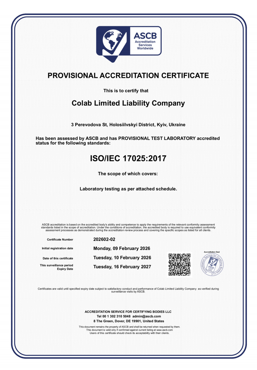 Наші протоколи випробувань є основою для регуляторної документації, оцінки безпечності та підтвердження заявлених властивостей продукції.