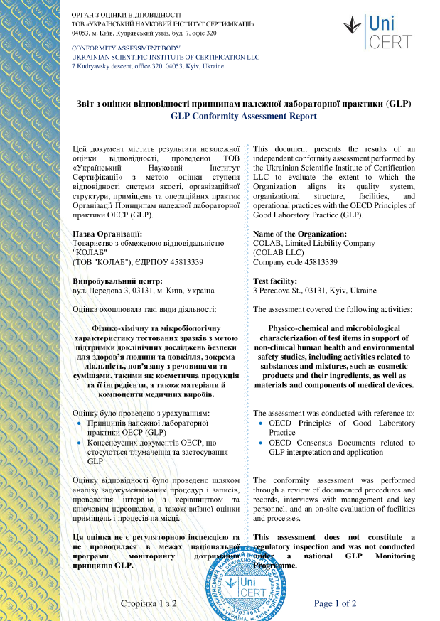 Звіт з оцінки відповідності Принципам належної лабораторної практики (GLP)